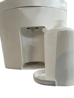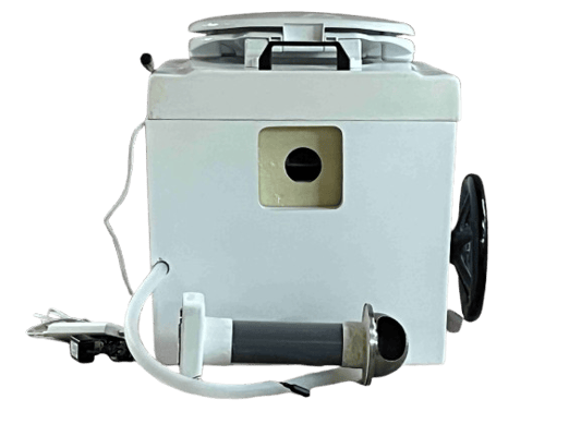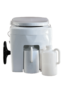 小便の排出は背面の排気管の中を通して屋外に出しますが、ポータブルとして使用する場合、本体前で3リットルの携行タンクが使えます。