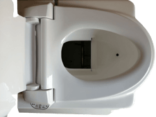 ハンドルレバーを引き上げると、扉はフェライト磁石で便器裏側に接着し扉が開放します。