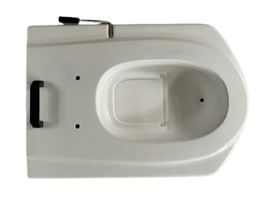 便器を取り外すときは、黒い取っ手と便器底部前方の縁を持って引き上げます。