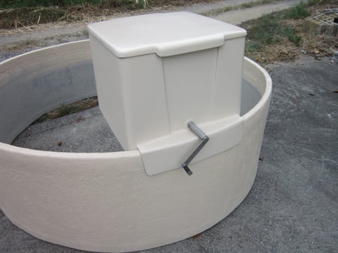 使用はハンドルレバーで便器底の扉を開け、用を足した後、攪拌ハンドルを手で回しコンポスト基材を攪拌します。