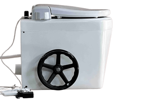 こまらんeトイレ50W型は、浄化槽の設置も、下水の配管工事も不要のコンポストトイレです。