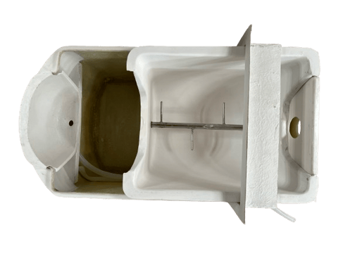 扉付け根のフェライト磁石が便器裏底の鉄板に接着し、扉が開いた状態になります。