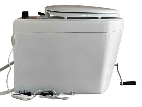 攪拌器をハンドルで回しますので、モーターはなく、機械的な故障はありません。電気・水道がなくても使えるトイレです。