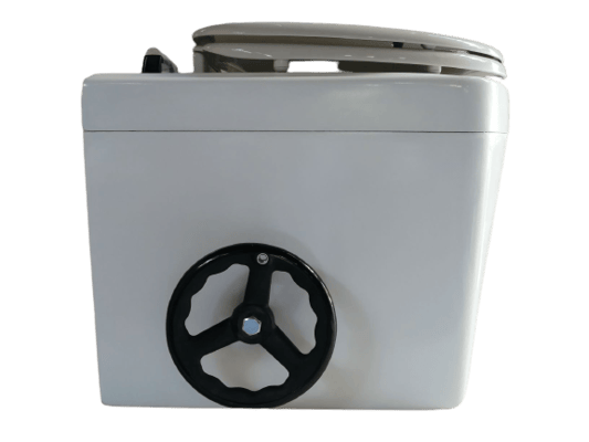 3,4人用のタイプで、座ったままで攪拌器を回せます。尿はトイレ横の5リットルタンクに入れることができ、室外のタンクにも入れることができます。