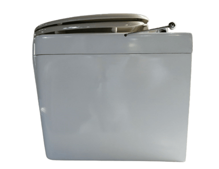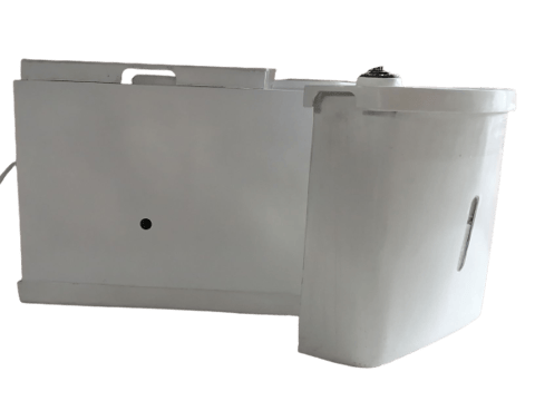 便座までの高さは46センチ。既存のトイレスペースに、そのまま収まるコンパクトなつくりです。水道から取水できれば、ウォシュレットも付けられます。