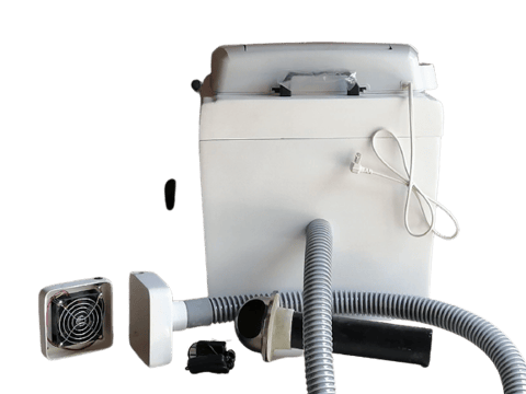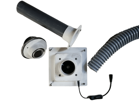 コンポストトイレは分解を良くするため、撹拌槽で発生する炭酸ガスと水分を排出し、新しい空気に換気する必要があります。