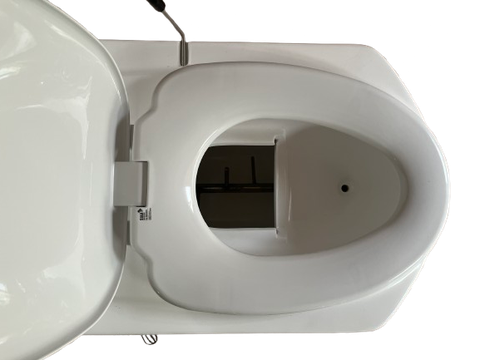 こまらんeトイレは便器底に開閉扉を付けています。用を足すときだけ扉を開けて使用します。小便をされるときは閉まったままで使用します。撹拌槽に少量の尿、水分が入っても問題はありませんが、コンポストが水分過多にならないよう気をつける必要があります。
