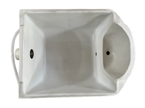 3,4人用のタイプで、尿はステンレス配管で屋外に出てタンクに入ります。