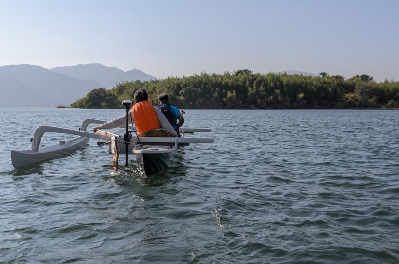 カヌーにエレキモーターを付けてクルージング