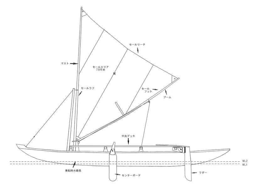 基本はカヌー、風があればセーリング、そして補機を付けてロングクルージング
