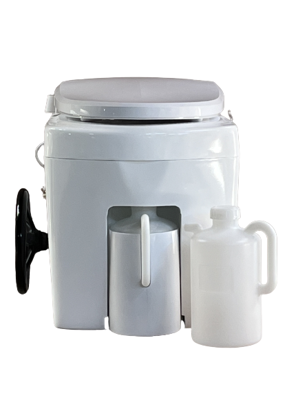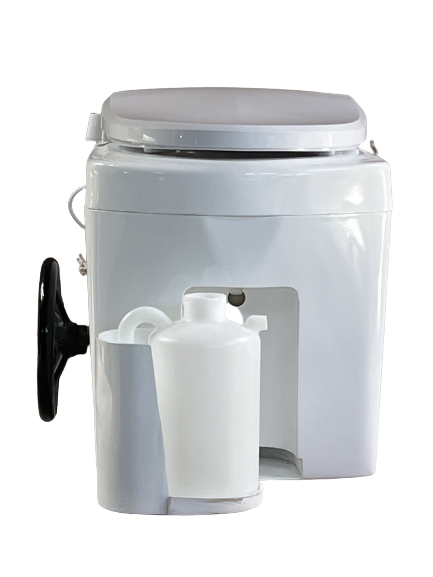こまらん℮トイレ20型は、少人数用のコンポストトイレで、ポータブルとして、常設のトイレとしてご利用いただけます。コンポストトイレは、バイオトイレと違って、電気を使わず、便だけをコンポスト基材の中で分解します。便が分解されたコンポスト基材は気温、基材の量によりますが、使用回数が多くなれば、分解し辛くなります。新しい基材に取替え、古い基材は堆肥等として処理します。尿は一度、タンクに貯めて、後で処理(薄めて畑に撒く、下水に流す、し尿回収してもらう等)します。
