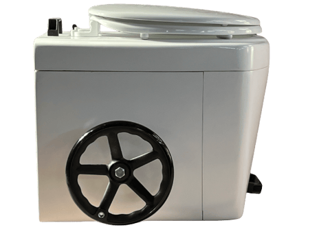左側のハンドルレバーを上げて、便器底の扉を開け使用します。