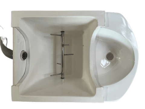 3,4人用のタイプで、尿はステンレス配管で室外のタンクに入れます。