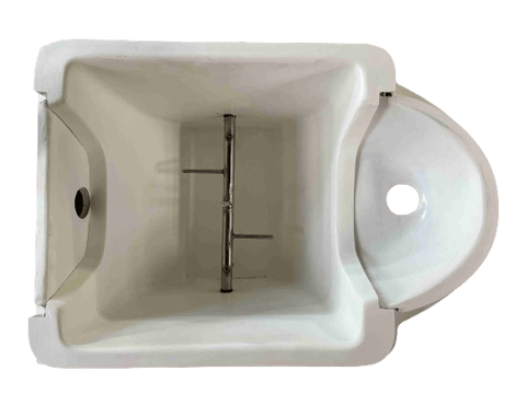 こまらんeトイレは便器底に開閉扉を付けています。用を足すときだけ扉を開けて使用します。小便をされるときは閉まったままで使用します。撹拌槽に少量の尿、水分が入っても問題はありませんが、コンポストが水分過多にならないよう気をつける必要があります。