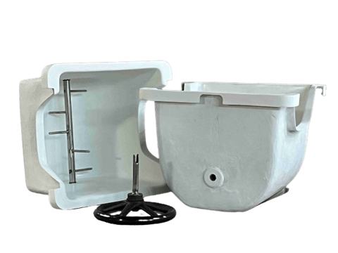 こまらんトイレに入れるコンポスト基材はピートモス(pHを調整したもの)、バーミキュライト、くん炭を同量、撹拌槽に入れます。おおよそ18リットルですが、撹拌器の横棒が見えなくなる程度で十分です。