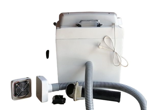 便器を取り外すと撹拌槽と8リットルの尿タンクが本体ケースに収納されています。