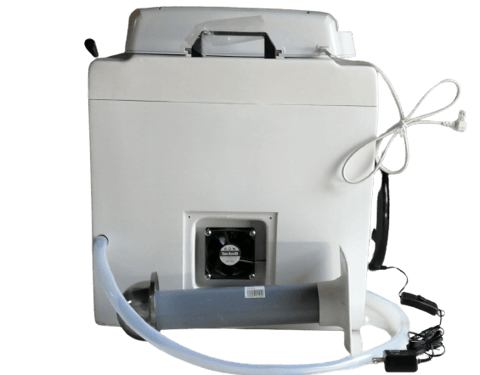 こまらんeトイレはヨット、ボート等と同じ材質、FRPでつくられていています。耐用年数は4、50年と大丈夫なつくりとなっています。総重量は約20キロです。また、4つのパーツからできていますので、トイレからの持ち出しは容易です。そしてお風呂のポリ浴槽のように簡単に水洗いができます。